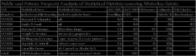 REDWatch analysis of Waterloo ABS SA1s showing quantity of private dwellings included in Waterloo Public Housing Estate ABS coverage.